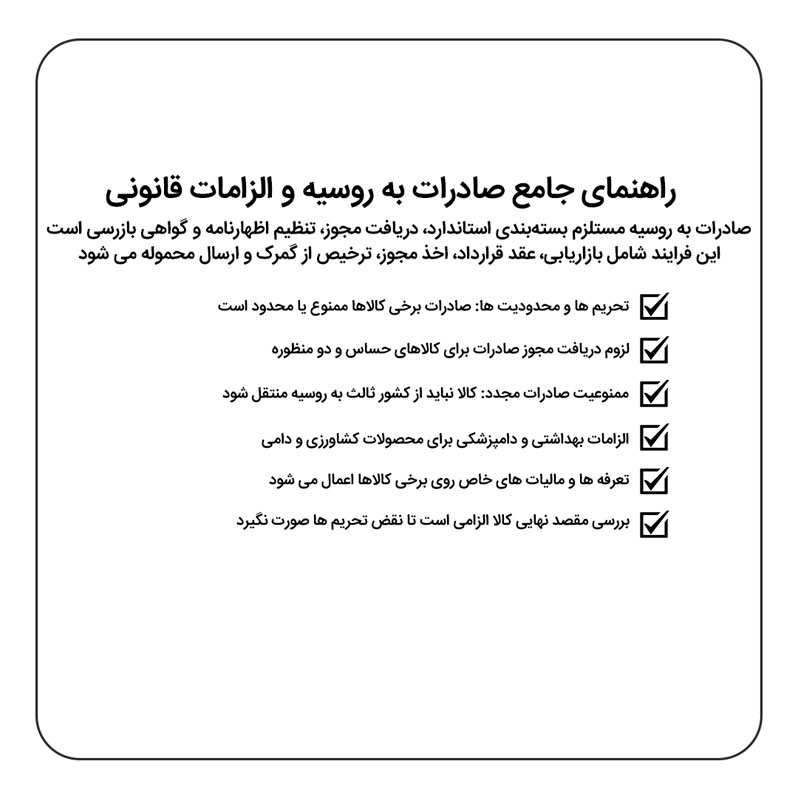 رعایت این نکات باعث تسریع در ترخیص کالا و افزایش اعتماد مشتریان روسیه میشود.